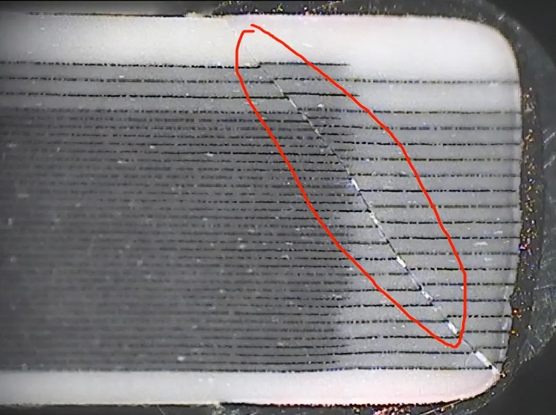 这张图片是因PCB板卡弯曲导致电容裂纹的内部切片抛光图,从内部结构可以明显的看出,裂纹与电容平面几乎呈45度角,这种是典型的CRACK实例。贴片电容质量怎么保证,MLCC进货渠道,贴片电容进货渠道。